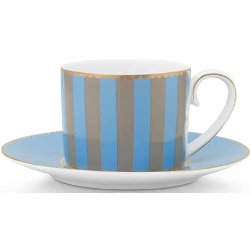 Pip Studio Espressokopp & Tefat Love Birds Stripes Blå-Khaki Utgått