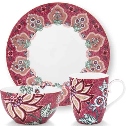 Pip Studio Frokostsett Flower Festival Mørk rosa Sett med 3 i Gaveeske Utgått