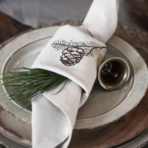 Ib Laursen Stoffserviett Tradisjon med Kongle på Gren Linfarge Utgått
