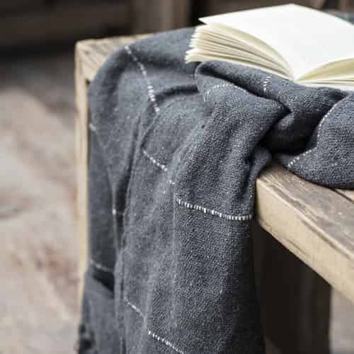 Ib Laursen Pledd Antrasitt med Kremstriper Over 130 x 160 cm Utgått