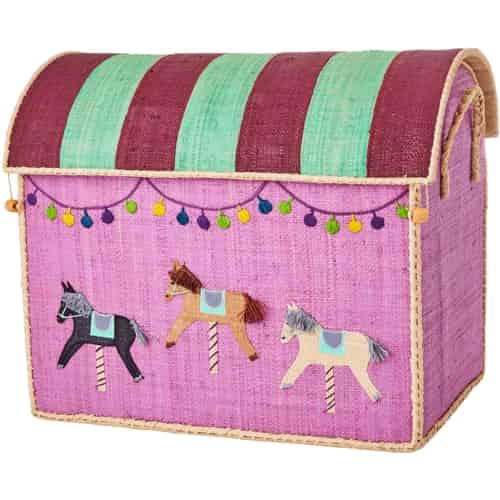 Rice Raffia Leketøyskurv - Hestekarusell Tema - Rosa - Liten Utgått