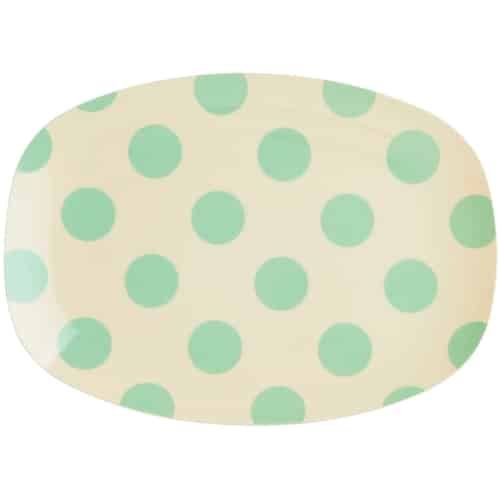 Rice Melamin Tallerken - Rektangulær - Krem - Green Dot - Liten Utgått