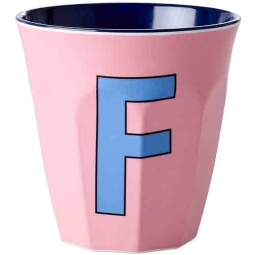 Rice Melamin Kopp med Bokstaven F - Rosa - Medium Utgått