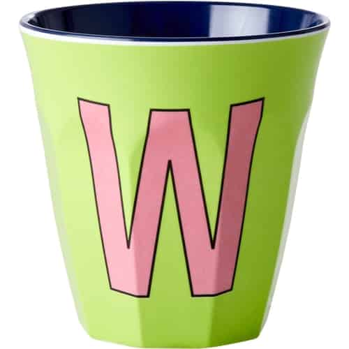 Rice Melamin Kopp med Bokstaven W - Pastell Neongrønn - Medium Utgått