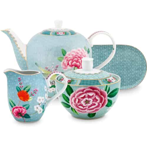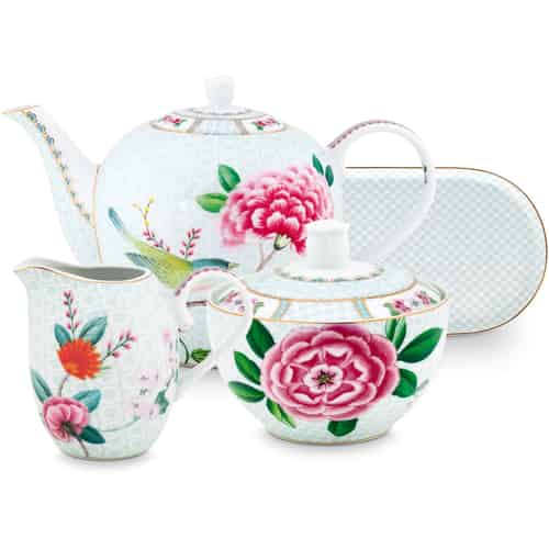 Pip Studio Tesett Blushing Birds Blå Sett med 4 i Gaveeske