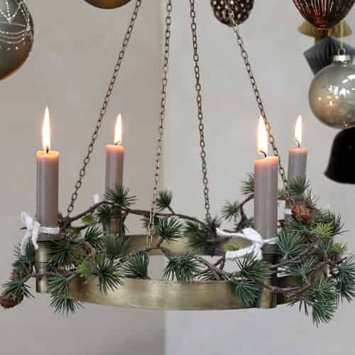 Chic Antique Adventskrans til 2,2 cm Stearinlys med Kjede til å henge Antikk-Messing Utgått