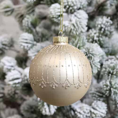 Chic Antique Julekule med Glitter Mønster Antikk-Latte Utgått