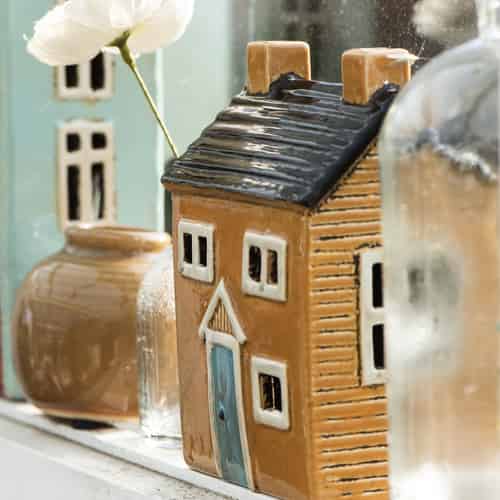 Ib Laursen Hus til Telys Nyhavn Grå med Beige Tak og 1 Skorstein Bue over Dør Utgått