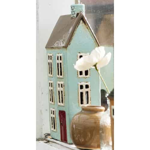 Ib Laursen Hus til Telys Nyhavn Turkis Grønn med Beige Tak og 1 Skorstein Utgått