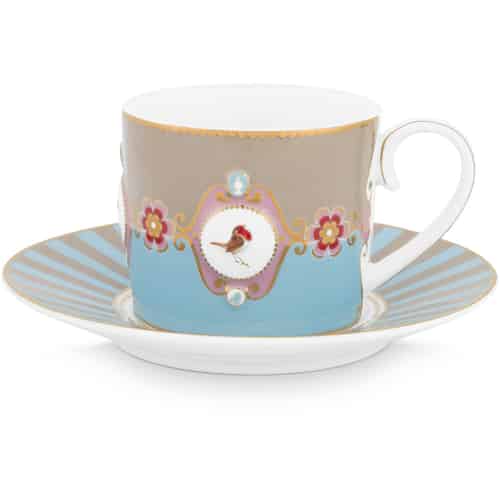 Pip Studio Kopp med Tefat Love Birds Medallion Blå-Khaki Utgått