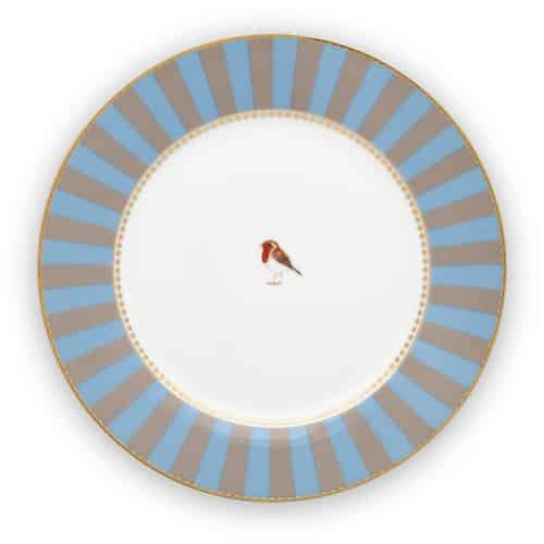 Pip Studio Tallerken Love Birds Stripes Blå-Khaki 21 cm Utgått
