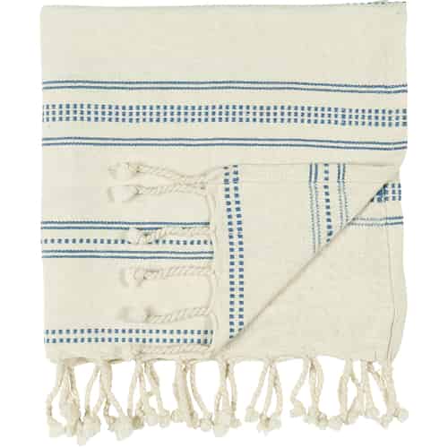 Ib Laursen Hammam Håndkle med Frynser Naturlig med Blå Vevd Mønster 100 x 150 cm På lager
