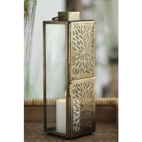 Ib Laursen Lykt til Telys med Mønster foran Høy Messing Utgått