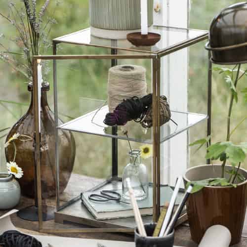 Ib Laursen Display til Bord med 4 Glasssider og 1 Glasshylle Messing Utgått