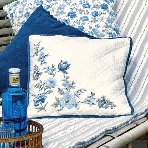 GreenGate Putetrekk Donna Blue med Broderi 40 x 40 cm