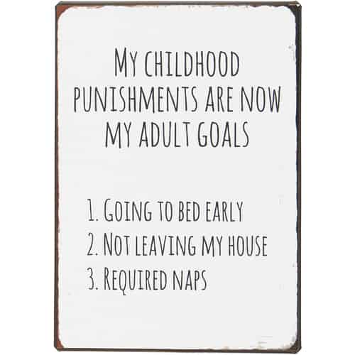 Ib Laursen Metallskilt - My childhood punishments are now my adult goals Utgått