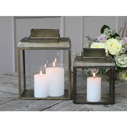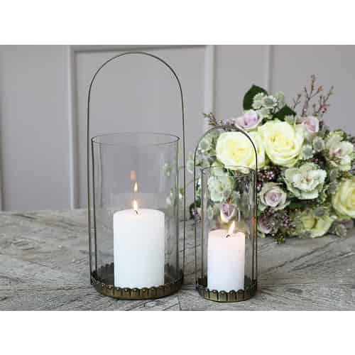 Chic Antique Hurricane med Glass Antique Messing Liten