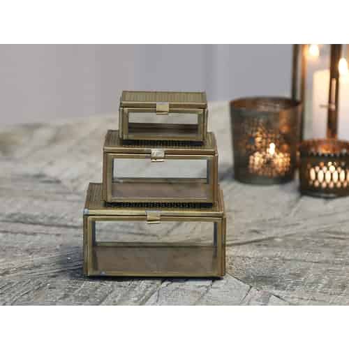 Chic Antique Glassbokser Sett med 3 Antique Messing