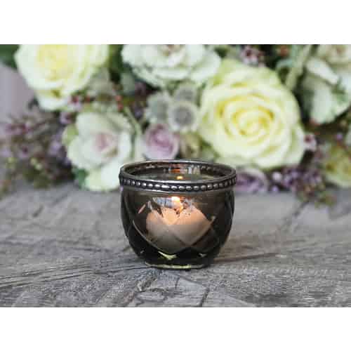 Chic Antique Telysholder med Harlekin og Perlekant Mørkegrå