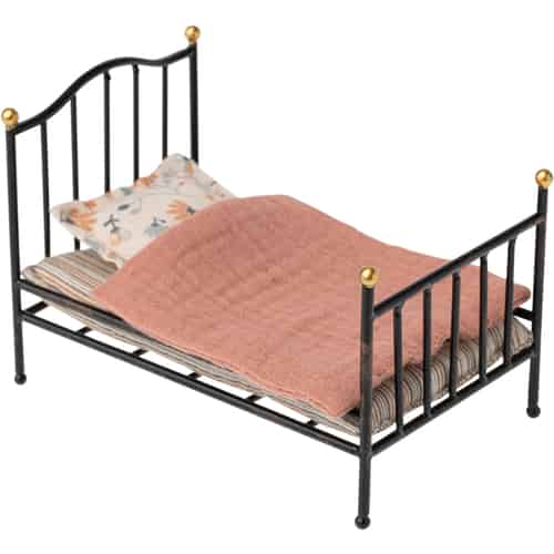 Maileg Tilbehør - Vintage Seng Mus - Antrasitt