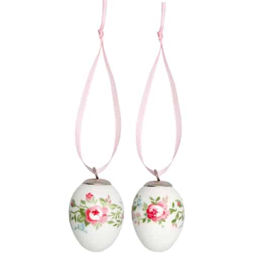 GreenGate Dekorativt Egg Gabby White Sett med 2 til å henge