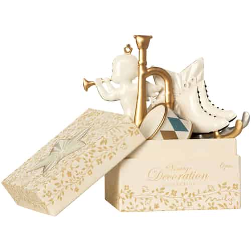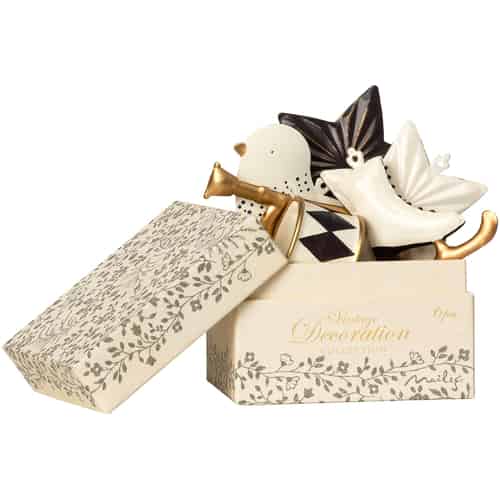 Maileg Julepynt Eske Metall Hvit/Gull 2019 Sett med 6