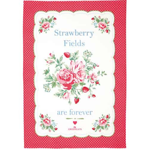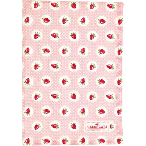 GreenGate Kjøkkenhåndkle Strawberry Pale Pink