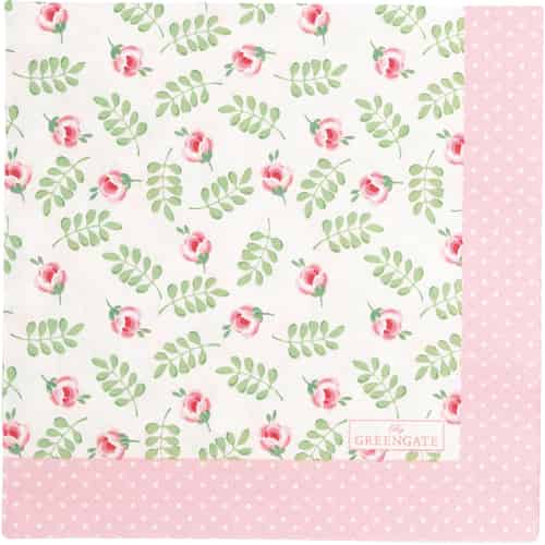 GreenGate Papirservietter Rose White Large 20 stk