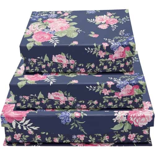 GreenGate Oppbevaringsboks Rose Dark Blue Sett med 3