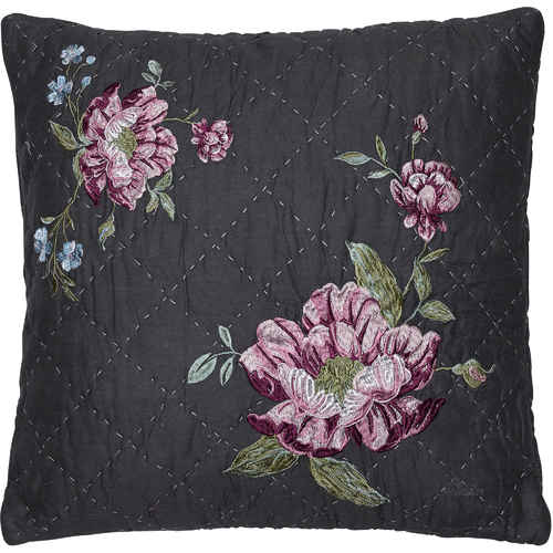 GreenGate Putetrekk - Cushion Cover Penelope Dark Grey with Embroidery 40 x 40 cm