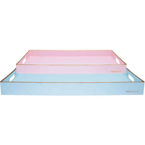 GreenGate Brett - Tray Rectangular Pale Blue with Gold Sett med 2