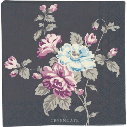 GreenGate Papirservietter - Paper Napkins Large Victoria Dark Grey 20 stk