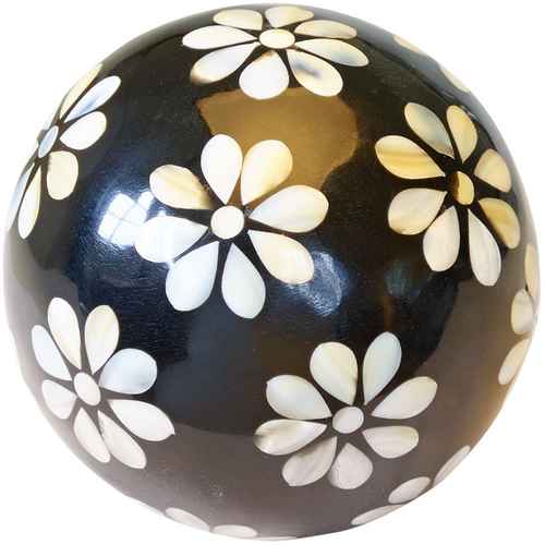 GreenGate Kule - Decoration Ball - White Flowers In Black Large Utgått
