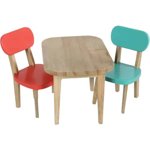 Maileg Kanintilbehør - Trebord og 2 Stoler - Koral og Turkis Utgått