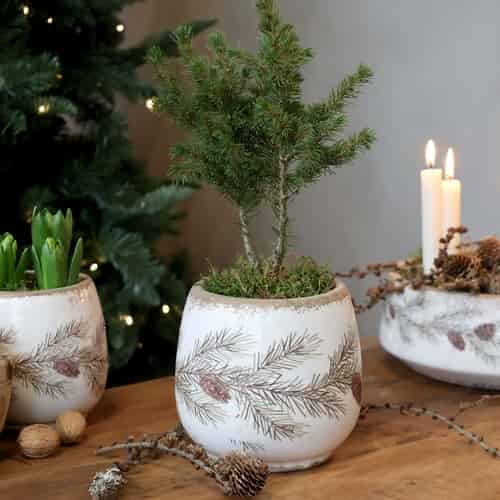 Chic Antique Blomsterpotte med Grankransmotiv Krem H 14,5 cm På lager