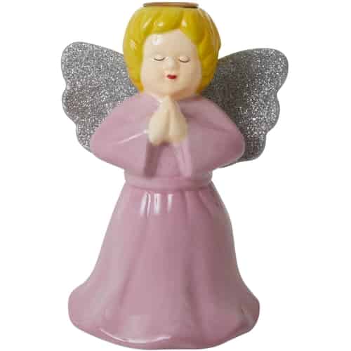 Rice Keramikk Lysestake - Rosa - Engel Formet - Stor Utgått