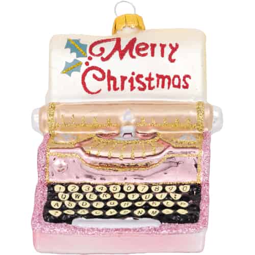GreenGate Julepynt - Glass - Skrivemaskin "Merry Xmas Pale Pink" På lager