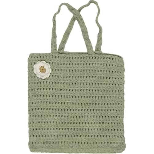 Ib Laursen Heklet Veske Dusty Green med Hvit og Gul Blomst i Midten Utgått