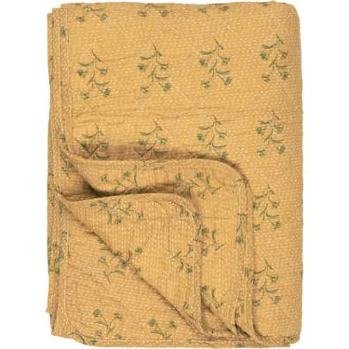 Ib Laursen Quilt Mustard med Grønne Blomster 130 x 180 cm Utgått