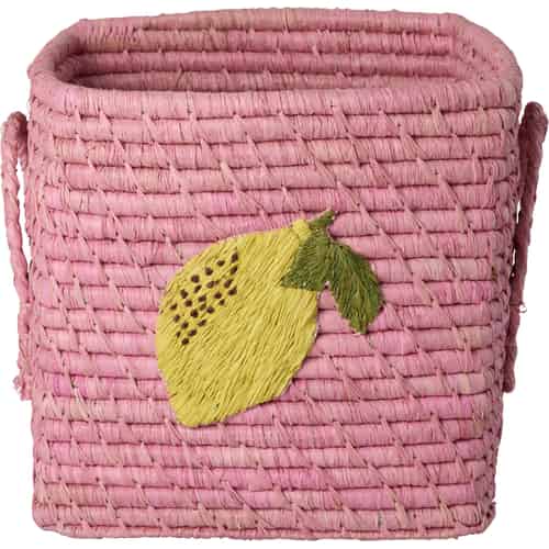 Rice Raffiakurv - Firkantet "Big Lemon"-broderi - Håndtak i raffia - Liten
