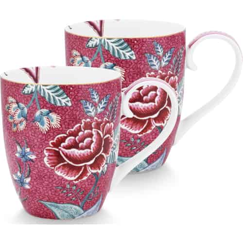 Pip Studio Krus XL Flower Festival Mørk rosa Sett med 2 i Gaveeske