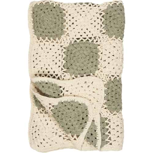 Ib Laursen Pledd Heklet Krem med Grønne Ruter 130 x 170 cm På lager