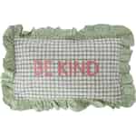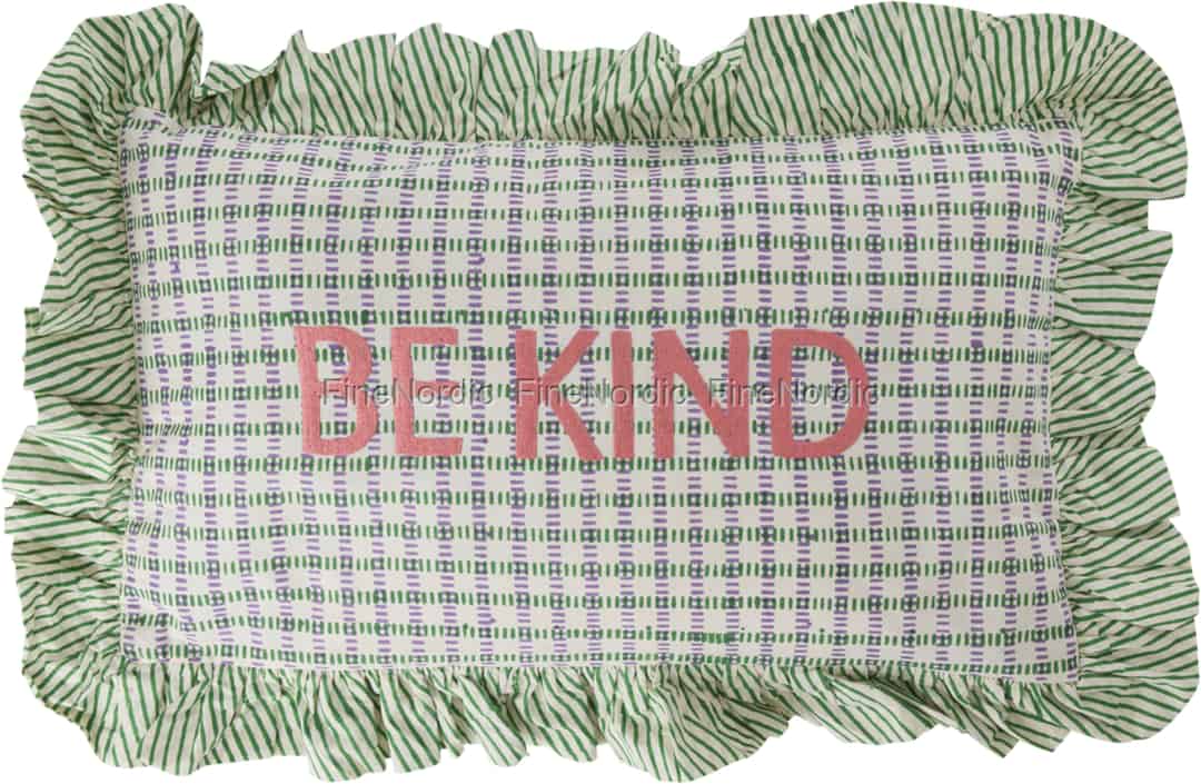 Rice Bomull rektangulær pute "BE KIND" broderi - Dus grønn - Fyll inkludert - 30 x 50 cm
