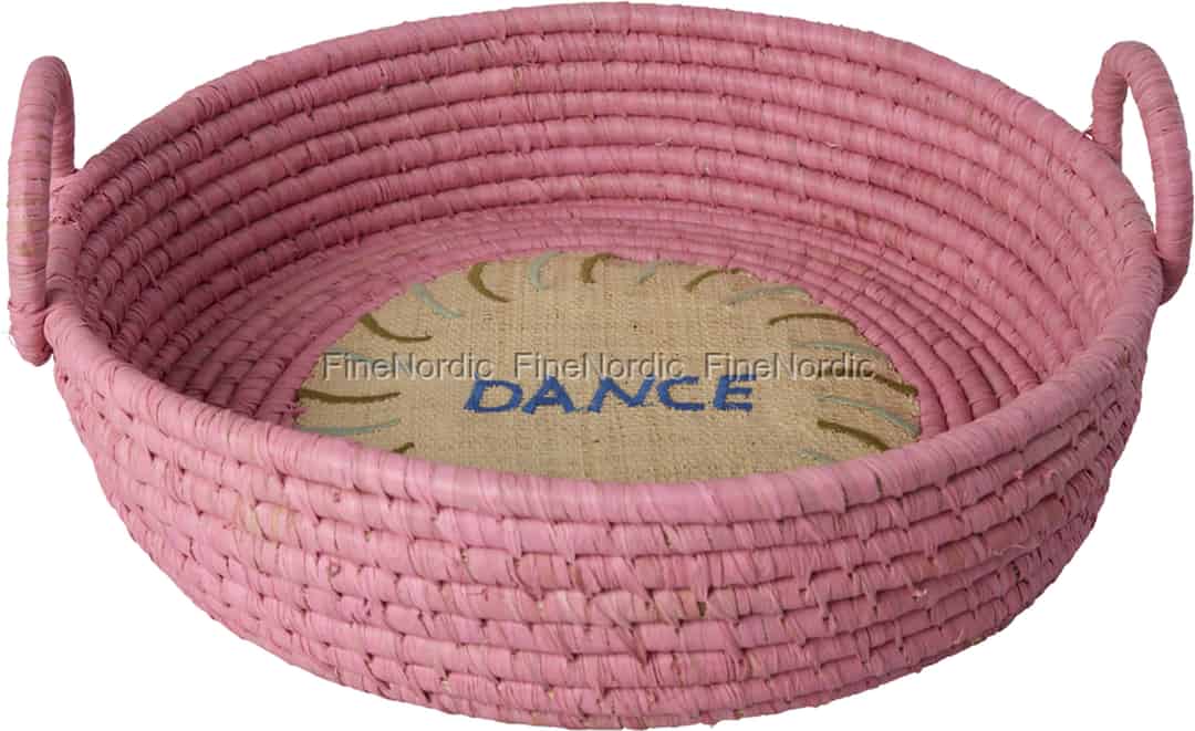 Rice Brødkurv i raffia - Rund "DANCE"-broderi - Rosa