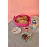 Gjør hverdagsbrødet til en liten feiring. Denne herlig livlige, rosa kurven fra Rice er laget av naturlig raffia og er et muntert hjem for favorittsurdeigen, croissanter eller frokostrundstykker.