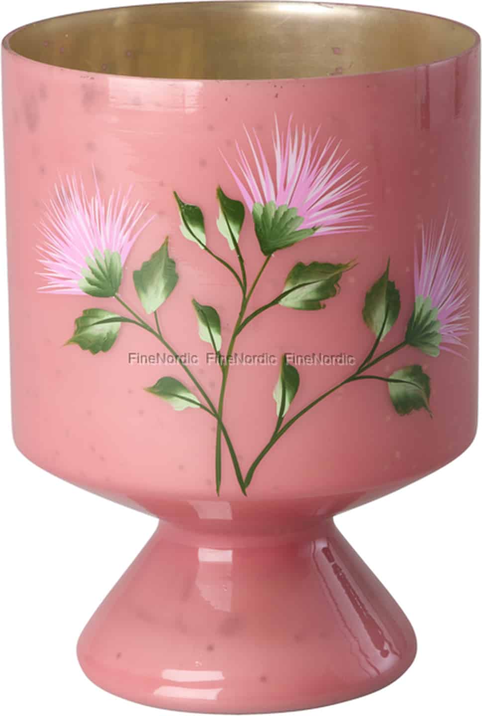 Rice Glasvase - på fot - Rosa - Håndmalte blomster