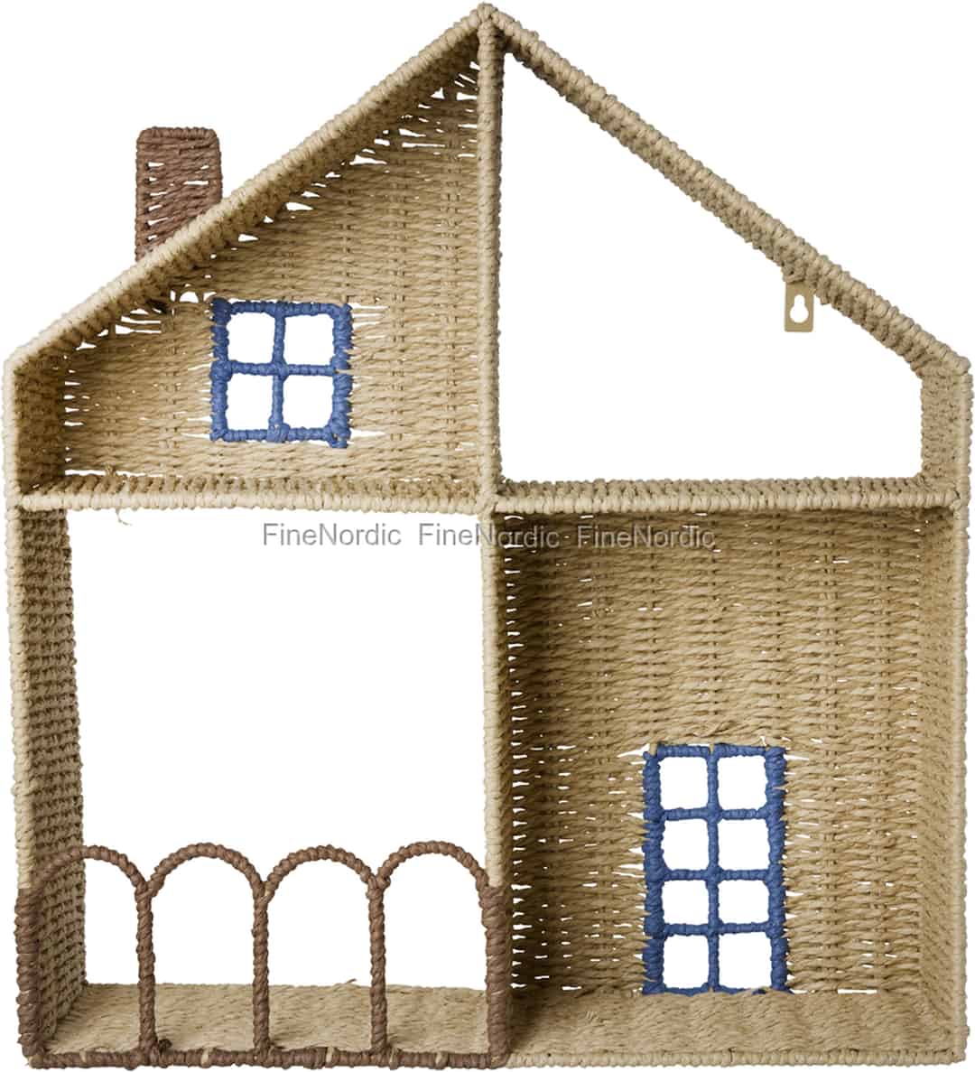 Se for deg et helt spesielt sted for alle de små favorittingene deres. Denne herlige, husformede hyllen, laget av flettet papirtau, tilfører et eventyrlig preg til ethvert barnerom og forvandler hverdagslig oppbevaring til en scene for fantasifull lek.