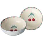 - Et snev av håndlaget sjarm: Hver skål er prydet med et søtt, håndmalt kirsebærmotiv og en fargerik, bølget kant, noe som sikrer at hvert eksemplar har sin egen unike og personlige karakter.