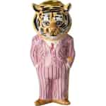 Forestill deg historiene denne sjarmerende tigeren kunne fortelle. Med et glimt i øyet og potene nonchalant i lommene, virker han klar for en kveld med hyggelig samtale. Denne fantastiske skapningen, født fra den fantasifulle verdenen til den franske kunstneren Nathalie Lété, er en hyllest til det uventede og gledesfylte. Den blanke keramikken føles glatt å ta på, mens de håndmalte detaljene – fra slipset med prikker til de elegante skoene – gir ham en helt egen personlighet.