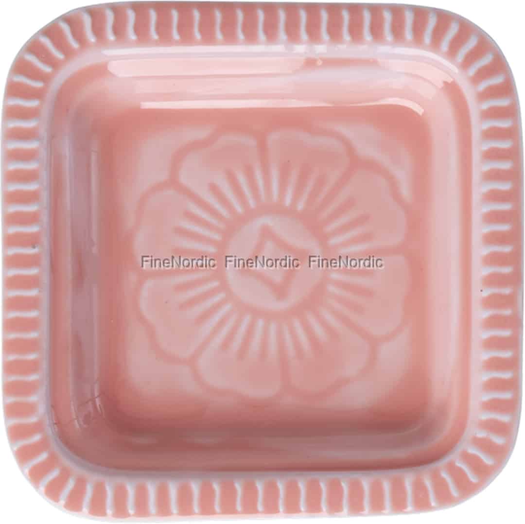 Oppdag den enkle gleden ved å ha et eget sted for alle dine små skatter. Dette nydelige, kvadratiske brettet fra Rice er designet for å bringe både orden og skjønnhet inn i hjemmet ditt. Den milde pastellkorallfargen utstråler en varm og innbydende følelse, mens den blanke overflaten fanger lyset på en vakker måte. La fingrene gli over det intrikate, pregede mønsteret – en sentral blomst med en delikat rillet kant – og sett pris på de gjennomtenkte detaljene som gjør dette brettet så spesielt.